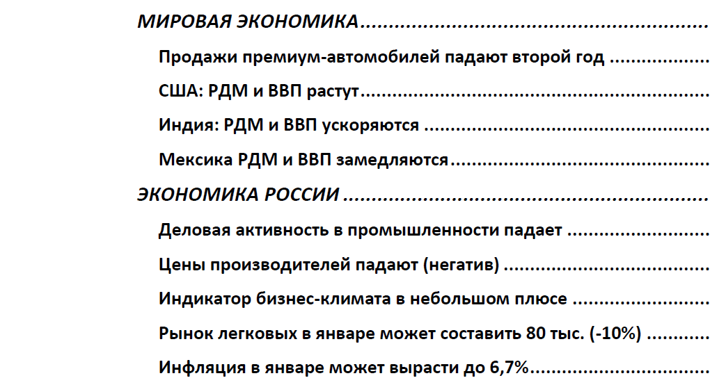 - Рынок легковых автомобилей, судя по недельным данным, в январе составит 80 тыс. штук (-10%). Это предварительная оценка. Напомним, в ноябре и декабря рынок рос.