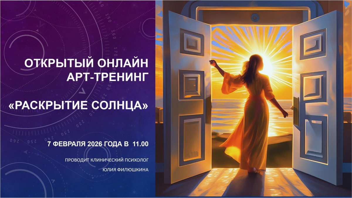 ». Когда - 7 февраля в 11.00 Вы когда нибудь задавались вопросами: • Что действительно важно для меня прямо сейчас? • В чём мой главный ресурс и источник сил? • Кто я на самом деле, когда всё складывается удачно? Если хотя бы один ответ — «да», то Вам точно нужно быть на открытом онлайн тренинге с использованием арт коучинговой техники «Раскрытие Солнца». Что вы получите: • Чёткое понимание 4 ключевых сфер вашей жизни, которые имеют первостепенное значение сегодня. • Ясное видение внутренних ресурсов — того, что даёт вам энергию и поддержку. • Мощный образ вашего «Я» — метафору, которая станет вашим внутренним компасом и источником силы. Для кого этот тренинг: • кто переживает жизненный кризис или период переосмысления; • кто хочет понять, куда уходит энергия и где её источники; • кто ищет опору в себе и желает сформулировать свой внутренний ресурс. Не откладывайте — ваш путь к осознанию предназначения начинается здесь и сейчас. Приходите сами, приводите друзей) Рсписание все