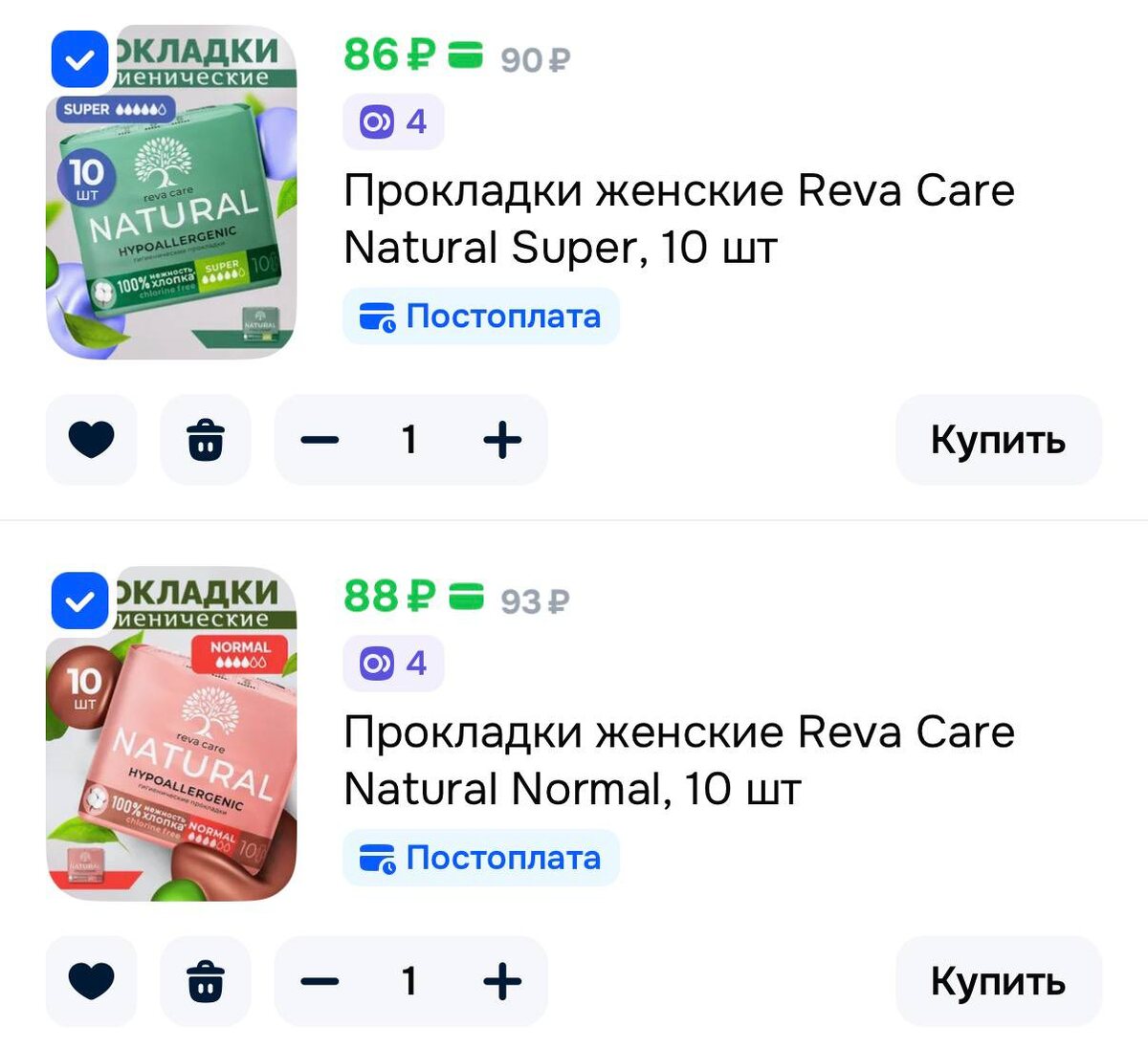 😀😀Прокладки женские Reva Care Natural Super, 10 шт