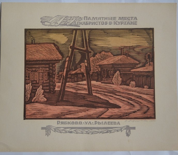 Линогравюра. Рябково, ул. Рылева. | 1982 г.