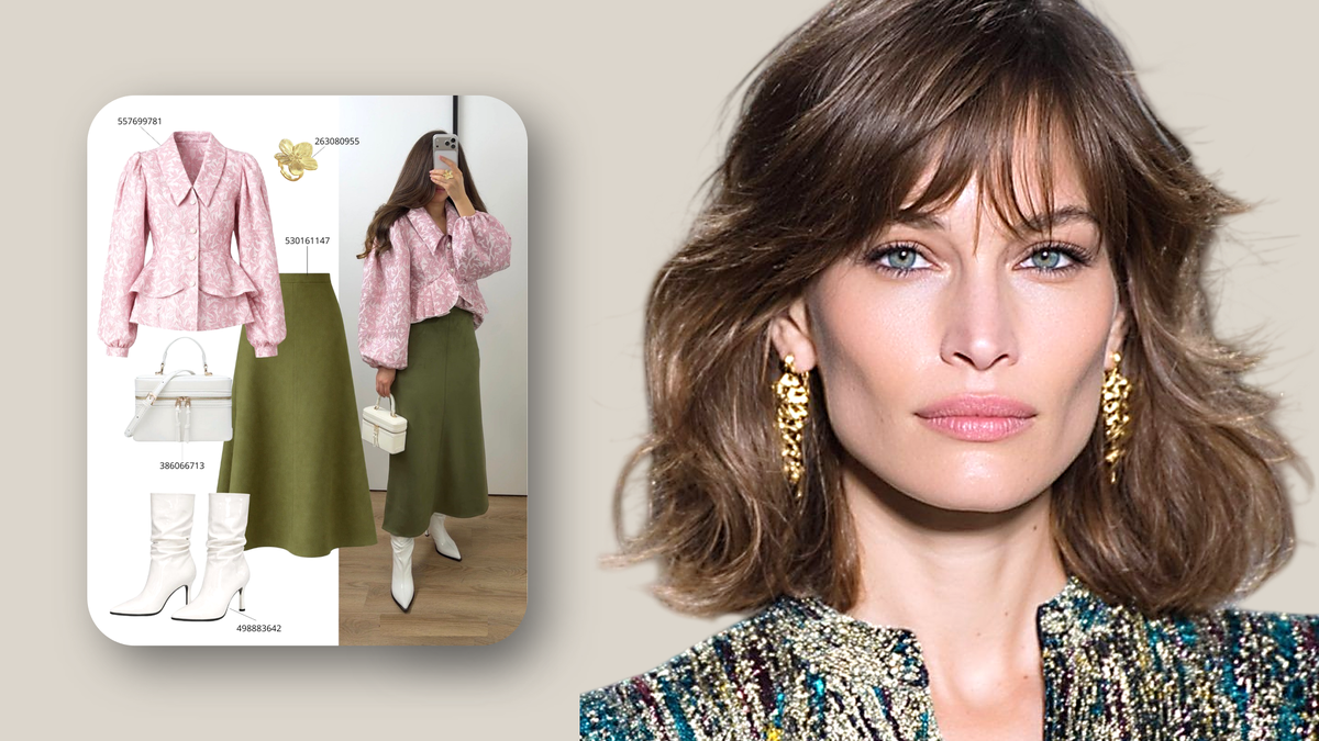 В этой статье – примеры образов, составленных из покупок на WB, которые наглядно показывают, с одним и тем же плечевым изделием можно собирать комплекты с разным настроением и стилистикой. Да, можно возразить, что эти сочетания не безупречны и при желании их можно было бы доработать. Но в данном случае ценность не в идеале, а в демонстрации возможностей. Видеть потенциал вещей - это первый шаг к разнообразному, но не раздутому гардеробу. А знания стилистических фишек и точность сочетания приходят уже с практикой. Сегодня разбираем образы с трендовой жаккардовой блузой с блеском (в моде приталенность за счет расширения верха и низа изделия, пышная форма рукавов, баска). На первом фото (выше 👆) - исходная стилизация, которая была показана продавцом на WB. Далее - примеры сочетаний с разными вариантами низа. Первый вариант — комплект с актуальной юбкой А-силуэта оливкового оттенка длины миди. Образ дополнен светлыми сапогами с заостренным мысом. При замене обуви на модель в светло-бежев