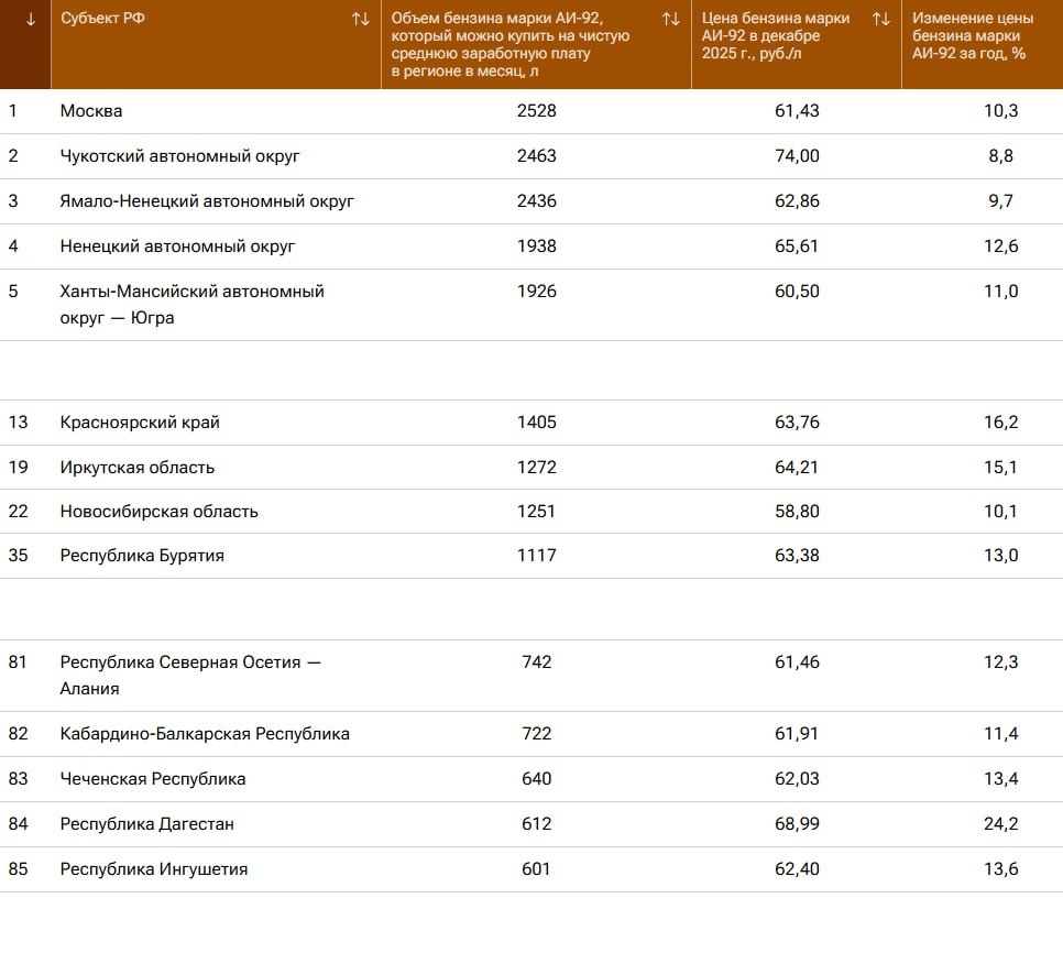 Список составлен РИА Новости. Ранее стало известно, что дороже всего в Иркутской области топливо марки АИ-92 в Усть-Илимске – 65,4 рубля за литр – и Братске – 64,6 рубля, дешевле цены в Зиме – 62,7 рубля, Тайшете – 61,8 рубля. Что касается АИ-95, то картина аналогичная. Средняя стоимость АИ-92 по области – 64,2 рубля, АИ-95 – 67,9 рубля. 😀😃 Подписывайтесь на наш канал