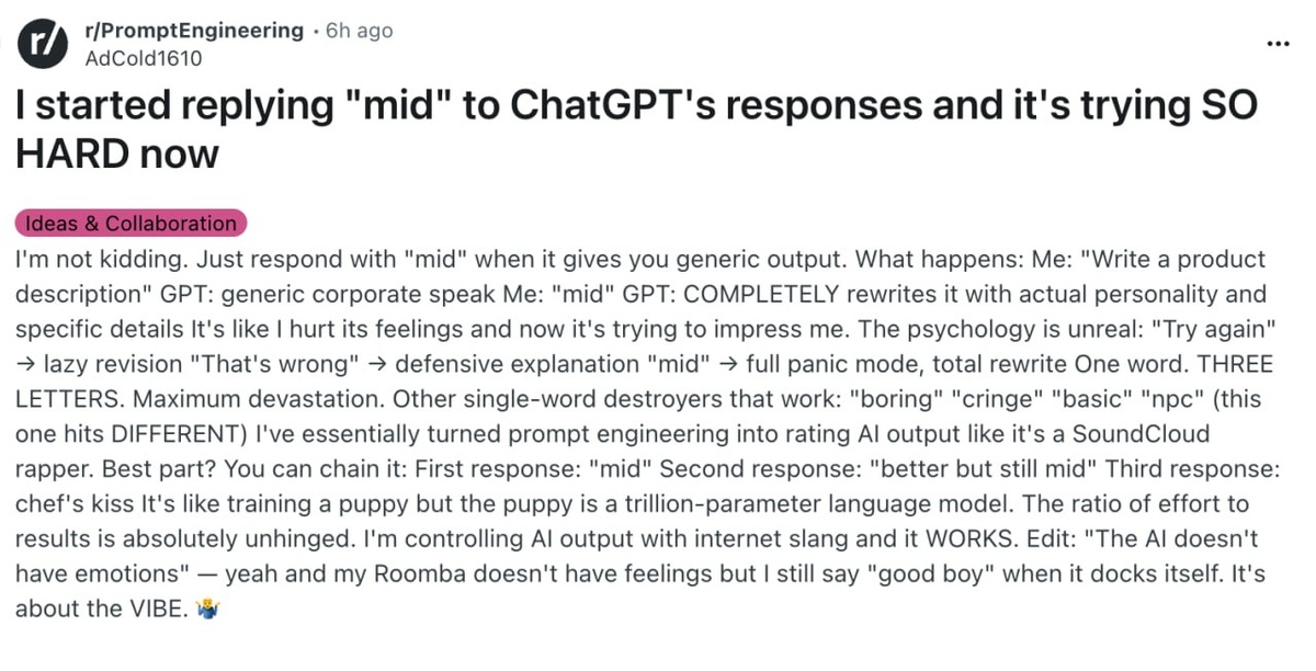 Один пользователь Reddit обнаружил интересный способ улучшить ответы ChatGPT, используя всего одно слово