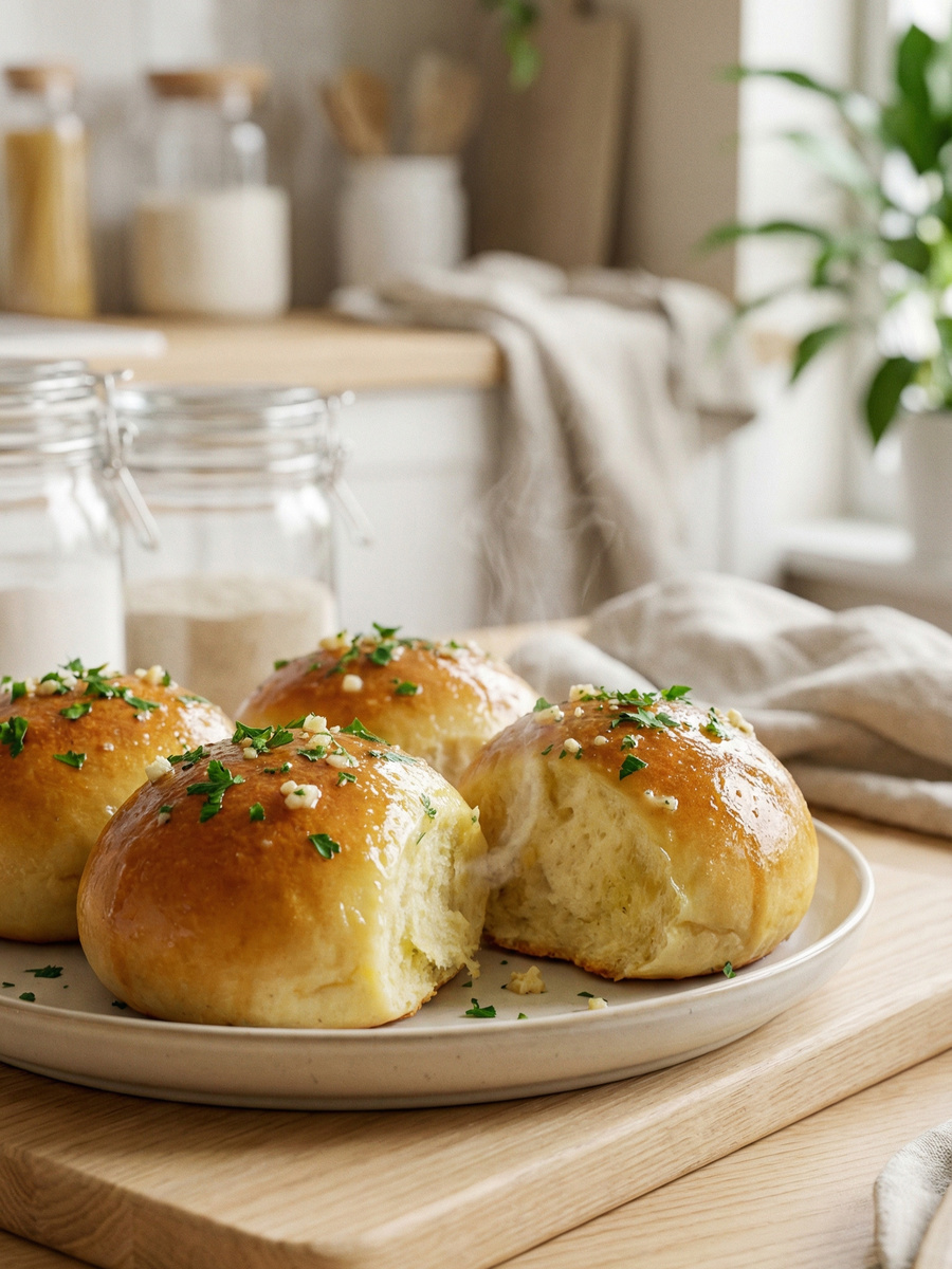 Нет ничего вкуснее домашней горячей выпечки! Когда разламываешь свежую булочку, слышишь хруст запеченной хлебной корочки, чувствуешь аппетитный и будоражащий чесночный аромат!