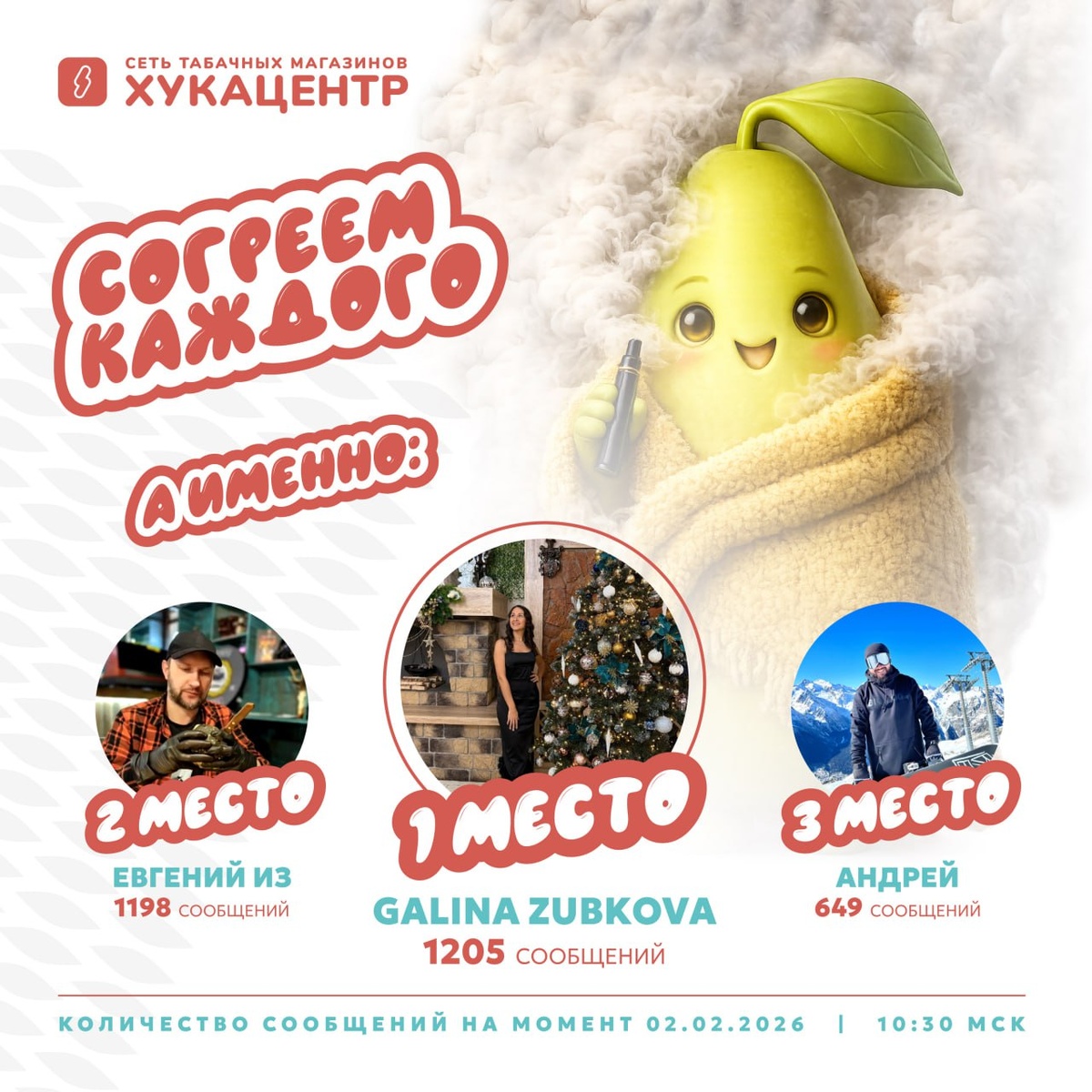 ! Друзья, время подводить итоги и чествовать наших настоящих титанов чата! Вы были невероятно активны — комментировали, ставили реакции, делились эмоциями… и теперь ваши усилия не прошли даром! 💛Поздравляем победителей: 🥇Galina Zubkova – получает уютный плед ХУКАЦЕНТР, чтобы каждый вечер был ярким и теплым! 🥈Евгений Из – получает стильный худи WAKA, комфорт и тепло гарантированы! 🥉Андрей (он остался инкогнито) – получает пачку угля, чтобы всегда можно было забить кальян и наслаждаться моментом! 👏 Огромное спасибо всем, кто принимал участие! Не переживайте, если не попали в этот раз — впереди еще много розыгрышей, и каждый активный участник получает шанс стать следующим победителем Так что оставайтесь с нами, комментируйте, ставьте реакции и вдохновляйте других!