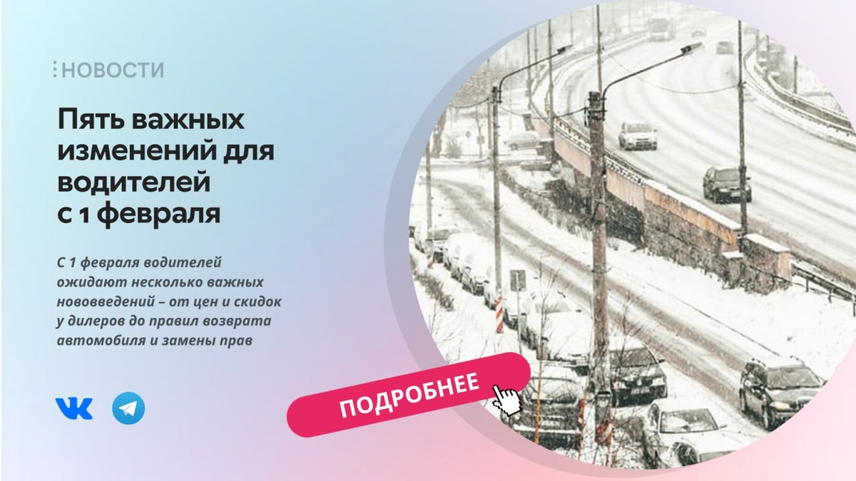 👇🏻 1️⃣Масштабных скидок не будет В феврале скидки на автомобили сохранятся, но прежних «суперскидок» по 800 тыс.–1 млн руб. ожидать не стоит. В прошлом году крупные скидки были связаны с большими складскими запасами и завышенными планами продаж. 2️⃣Цены продолжат расти Новые автомобили подорожают из-за роста тарифа утильсбора и снижения складских запасов. Наибольшее повышение в феврале прогнозируют в сегменте бюджетных авто, а в течение года – среди импортных и премиальных моделей. По оценкам экспертов, минимальный рост цен на машины с ДВС (бензиновые и дизельные) составит 6–10%, а на мощные электро- и гибридные авто без локализации – до 25–35%. 3️⃣Возврат машины по браку менее выгодный С 1 февраля компенсацию при возврате некачественного автомобиля будут считать исходя из цены аналогичного подержанного авто, а не нового. Ранее можно было претендовать на стоимость нового аналога, теперь – только на цену машины с тем же пробегом и годом выпуска. Сумма возмещения в случае возврат