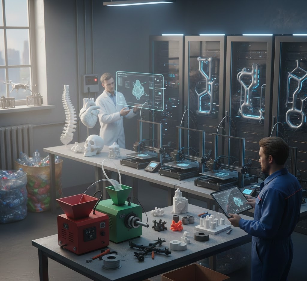 А вот если использовать тренды — космос, медицина, обувь, лазерную цветную маркировку, переработку пластика — можно спокойно отстраиваться от конкурентов, которые всё ещё застряли в споре «PLA или ABS».