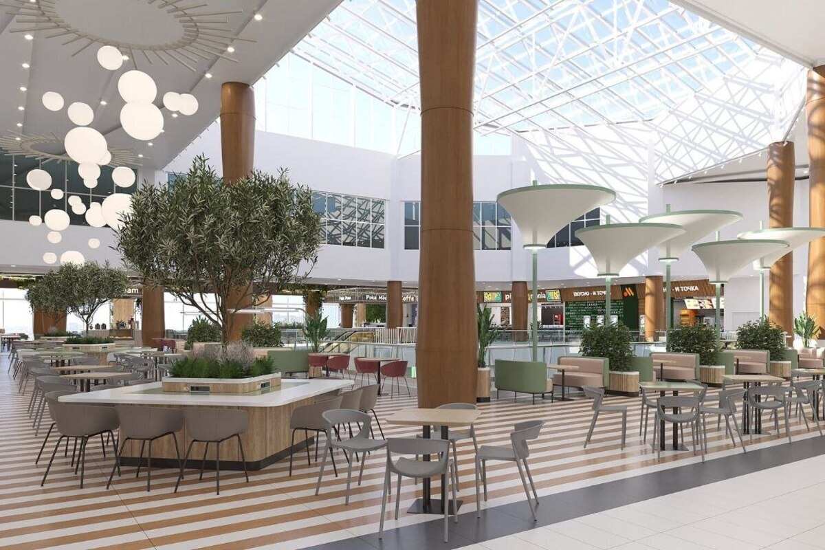 На АРХ ПРО появились визуализации будущего интерьера фудкорта ТРЦ «Акварель Волгоград». По картинкам видно: уходят от привычного «быстро поел и ушёл». Вместо этого – разные сценарии посадки. Небольшие островки под пары, длинные столы под компании, места «на час с ноутбуком». Плюс акцент на свет и фактуры, чтобы зона не выглядела временной.