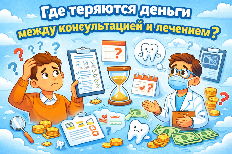 Основные финансовые потери в стоматологии возникают не на этапе привлечения пациентов и не во время лечения. Они формируются в промежутке между консультацией и началом лечения, когда пациент остаётся без сопровождения.
