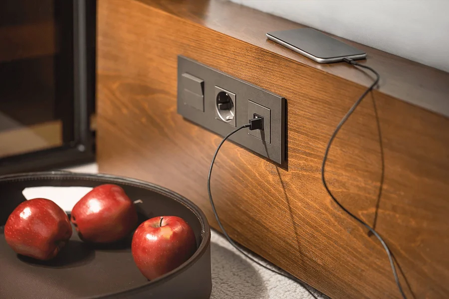 Розетки, которые будут использоваться для подключения зарядных устройств, стоит размещать у кровати. Это позволит отдыхать, не расставаясь со смартфоном даже в том случае, если батарея села.