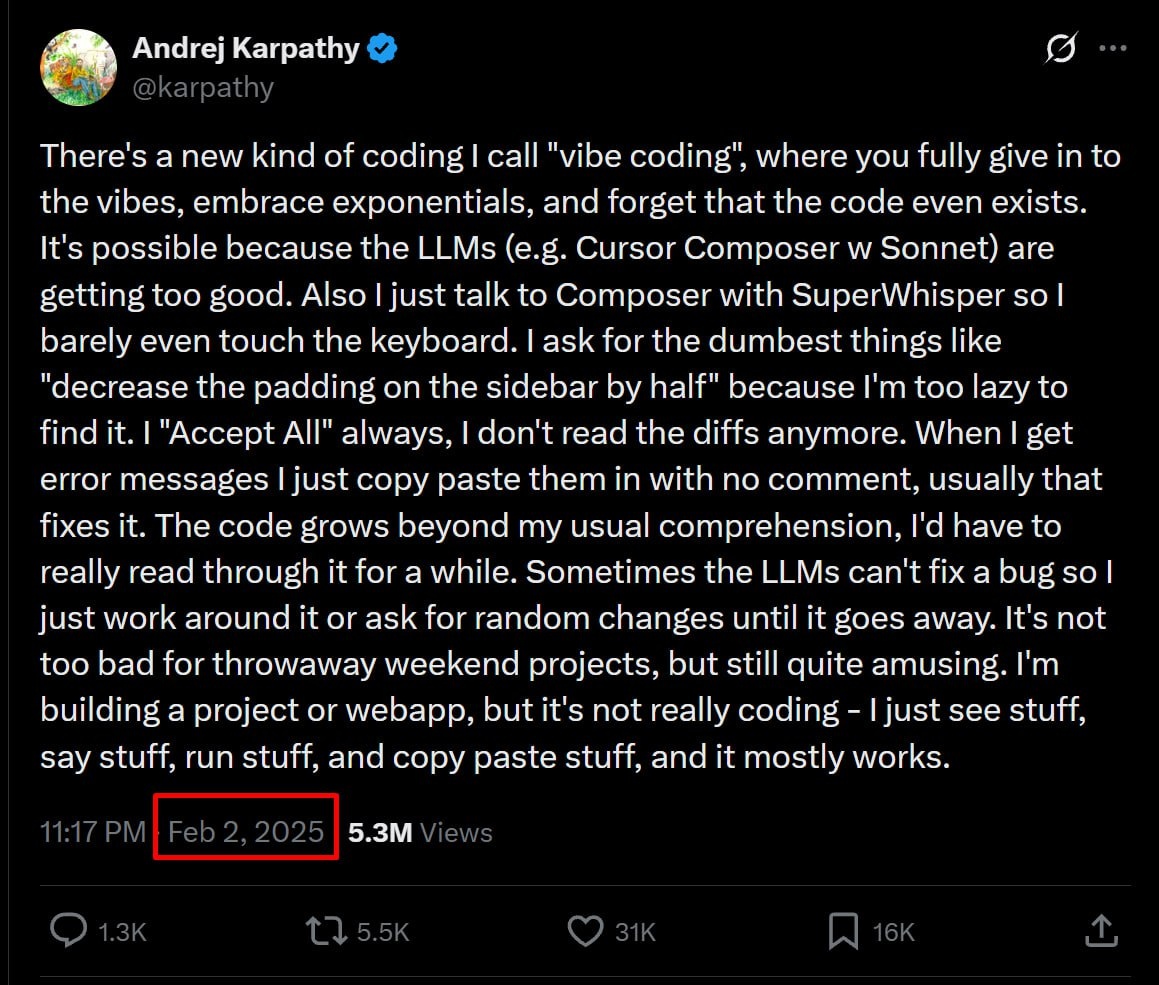 Годовщина термина «вайб-кодинг» от Andrej Karpathy