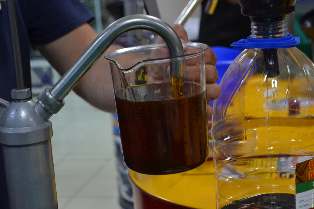 Еще один популярный формат - масло с крана, на розлив. В некоторых автомагазинах это выглядит так: в зале стоит огромная бочка с наклейкой известного бренда, продавец бодро наливает вам нужный объем в вашу же тару.