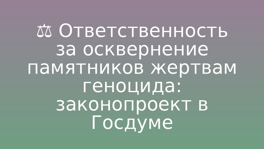 народа. Инициатива (группа депутатов во главе с Ольгой Занко) предусматривает санкции, аналогичные ст. УК РФ об уничтожении/повреждении воинских захоронений и памятников защитникам Отечества: штраф до 5 млн руб., обязательные работы до 480 часов, принудительные работы до 5 лет или лишение свободы до 5 лет. За отрицание факта геноцида и оскорбление памяти жертв предлагается до 3 лет лишения свободы, обязательные работы или штраф до 3 млн руб.
