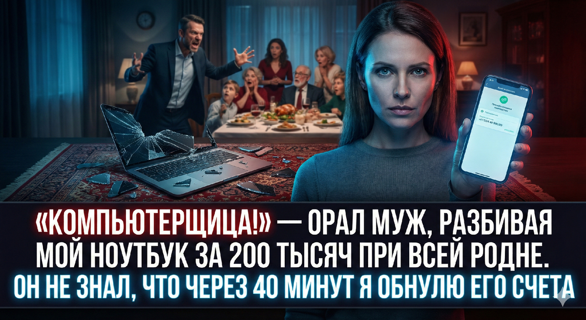 Знаете, есть моменты, когда время замедляется. Я видела, как он поднимает мой лэптоп над головой. Видела искажённые ужасом лица родственников. Видела торжествующую ухмылку Раисы Александровны в углу.