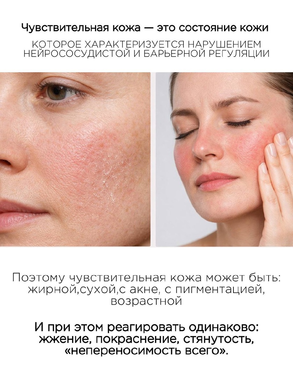 Чувствительная кожа — это не тип, это состояние, которое возникает, когда кожа теряет контроль над своей защитой и реакциями