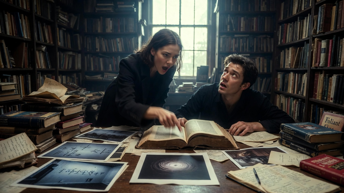 Возвращение из санатория было похоже на возвращение с другой планеты. Даже на улице, под открытым небом, давившая тишина того подвала ещё долго висела в ушах фоном, а цифры над головами прохожих возвращались ко мне медленно, будто пробиваясь сквозь слой ваты. Но теперь у нас была зацепка. Пусть нематериальная, но осязаемая. Алиса, с присущей ей методичностью, взялась за расшифровку тех странных символов. «Фолиант» на несколько дней превратился в исследовательский институт паранормальных явлений. Она заперла магазин для посетителей, повесила табличку «Инвентаризация», и мы погрузились в работу. Алиса сфотографировала символы на стенах (снимки получились смазанными и тревожными, как будто камера тоже сопротивлялась). Она распечатала их в крупном формате и разложила на большом столе. Рядом возникли стопки книг: труды по философии, алхимии, теоретической физике, квантовой механике, психологии Юнга, даже по лингвистике и теории информации. Она искала параллели, аналогии, любые намёки. Я же,