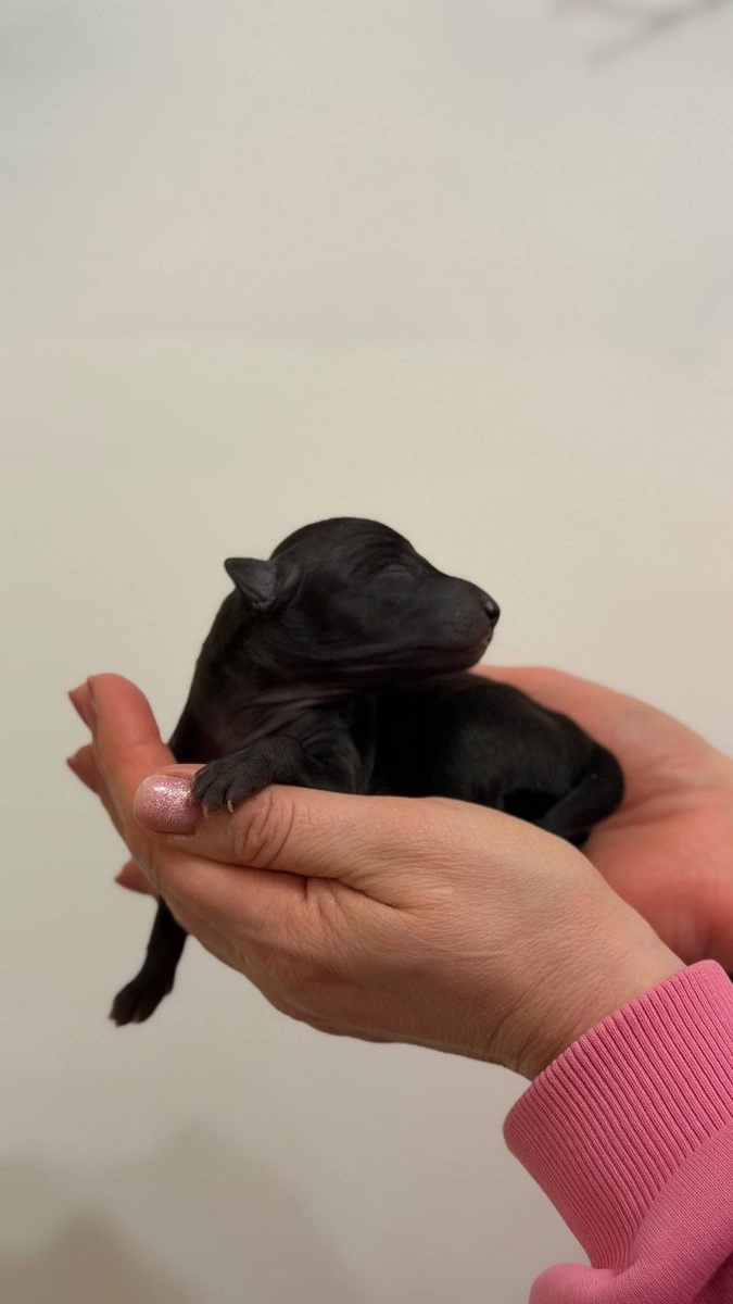 Desert Snow RoxySugar. Родилась 27.01.2026. Крошечная. Чёрный окрас — глубокий, плотный. А на задних лапках — белые пальчики. Пока она — просто малышка. Но имя уже есть. И оно про сладость. Ту самую, которая потом окажется с характером.