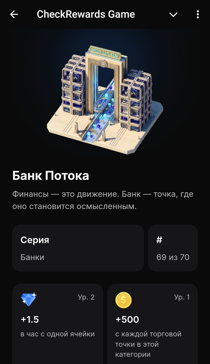 Что за игра? Игра из всем известного ЧекСкана, подробнее про неё можно узнать вот здесь Для меня это не способ заработать, а просто интересная игра с прохождением квестов, географическими открытиями (моими личными), немного с эмоциями и азартом. В общем, просто - ИГРА, хотя и в ней есть возможность получить награды, а потом довольно не простым образом превратить их в реальные финансы. Благодаря итогам, которые подвели в игре для каждого игрока, я узнала, что начала играть 30 августа, спасибо разработчикам, теперь я это запомню. Следовательно, я уже в игре 5 месяцев, и считаю свои достижения оччень даже неплохими. Самым важным для меня в январе стало приобретение ещё одной постройки -банка, как и планировалось. Банк я построила 21 янв., фиксирую даты, потому что самой интересно планировать дальше и смотреть как продвигается дело - по плану или нет. Могу собой гордиться, иду по плану, на бездумное открытие разных боксов не ведусь - рулетка есть рулетка, нечего в неё верить)) Итак, выбр
