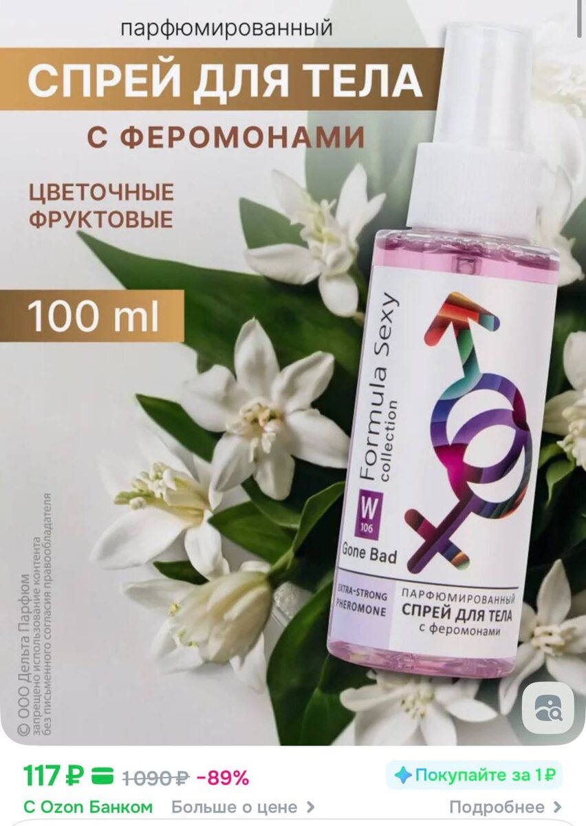 ! Мист для тела и волос увлажняющий парфюмированный спрей Formula Sexy гуд герл Gone Bad W106 Аромат чистоты и свежести 100 мл. подарок девушке на 8 марта https://ozon.ru/t/rd6POND ✅ Канал по скидкам 🔣 Бот с промокодами
