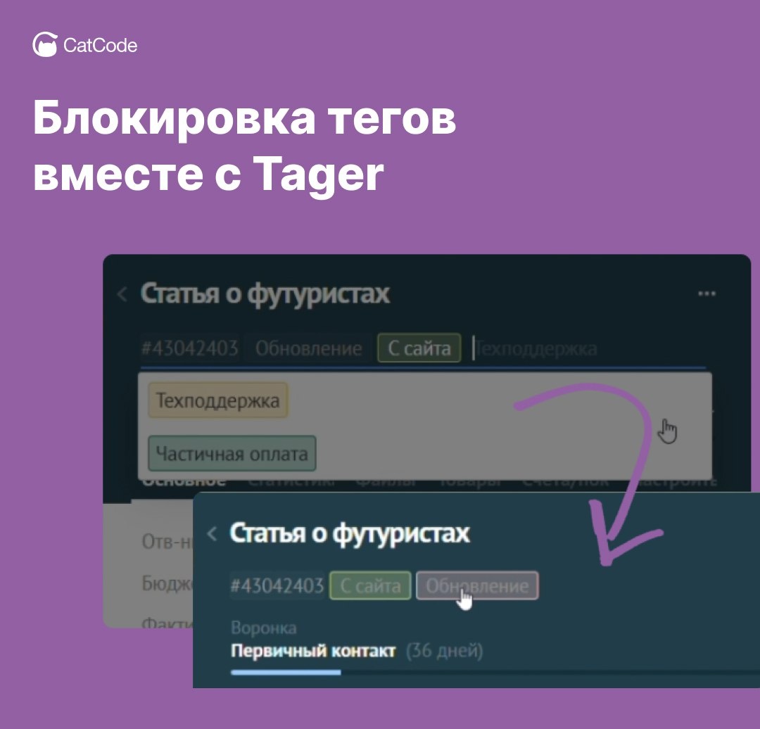 Tager позволяет: — управлять тегами системно, а не вручную — исключить путаницу и дубли — сделать аналитику и сегментацию более точной — упростить работу менеджеров и контроль со стороны руководителя Теги перестают быть хаотичным набором и начинают работать на бизнес: быстрее, понятнее и прозрачнее. 🟣 Ссылка на виджет Следите за обновлениями и устанавливайте виджеты!