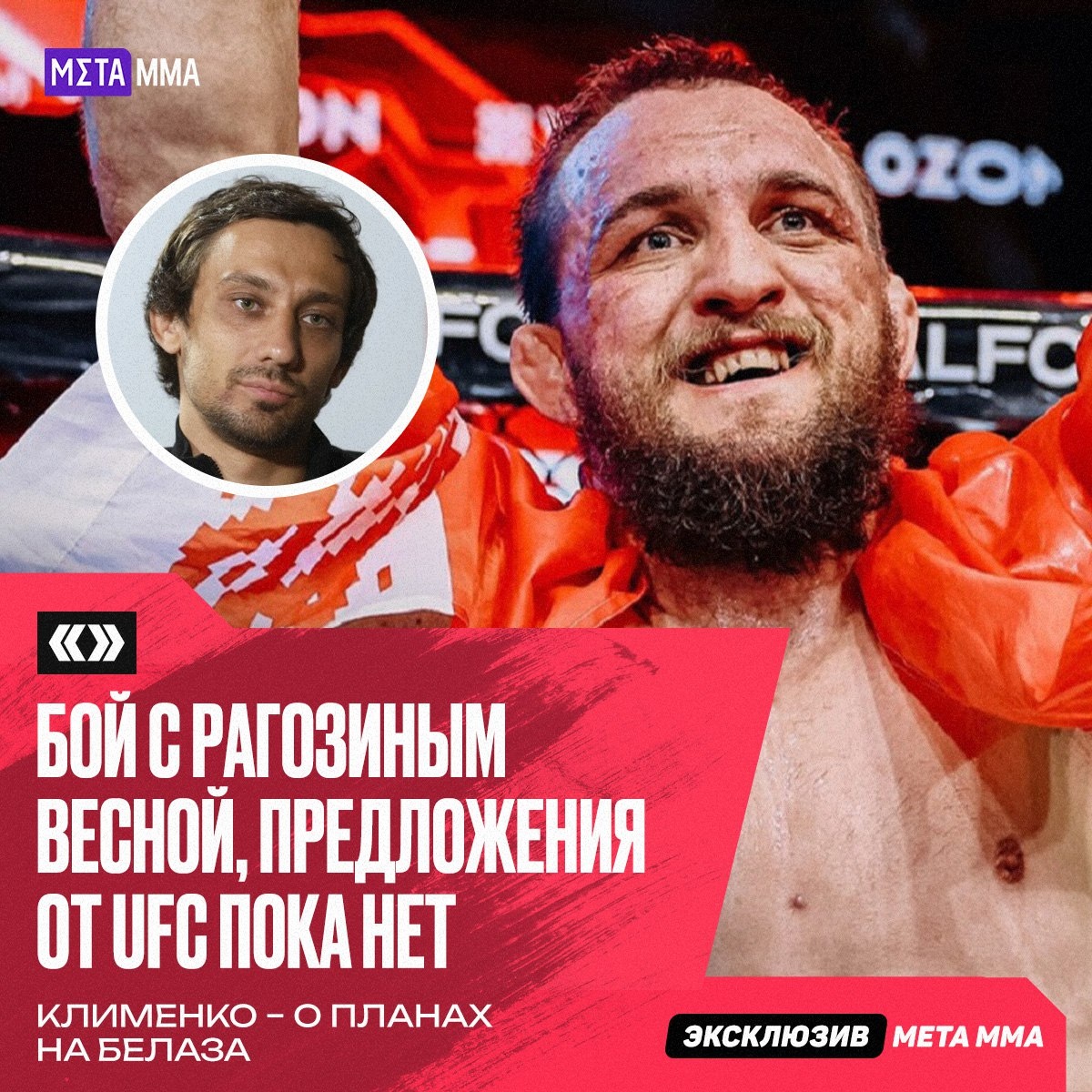 Глава RCC Николай Клименко подтвердил титульный бой Владислава «Белаза» Ковалева против Михаила Рагозина и рассказал о перспективах перехода бойца в UFC. «Ближайшее мероприятие на стадионе запланировано на май-июнь: это будет защита пояса Владислава «Белаза» Ковалева против Михаила Рагозина. И Влад, и Миша – бойцы RCC, и никаких проблем в организации их боя я не вижу. Если речь о возможной поездке Влада в США и интересе со стороны UFC, то если бы от них поступило конкретное предложение, мы обязательно рассмотрели бы его и без проблем отпустили. Пока такого предложения нет. Я знаю, что у него большой потенциал, и вопрос его попадания в UFC – это вопрос времени. Мне нравится, как он работает в медийном плане, сам ездит, пробует, вкладывается. Рано или поздно он дойдет до своей цели», – заявил Клименко в интервью MMA.Metaratings.ru. ❓ Какой следующий шаг для Белаза важнее? ❤️ — Остаться и доминировать в RCC 👍 — Пора пробовать себя в UFC 👊 Подпишись на Meta MMA | Meta MMA в MAX | Наш