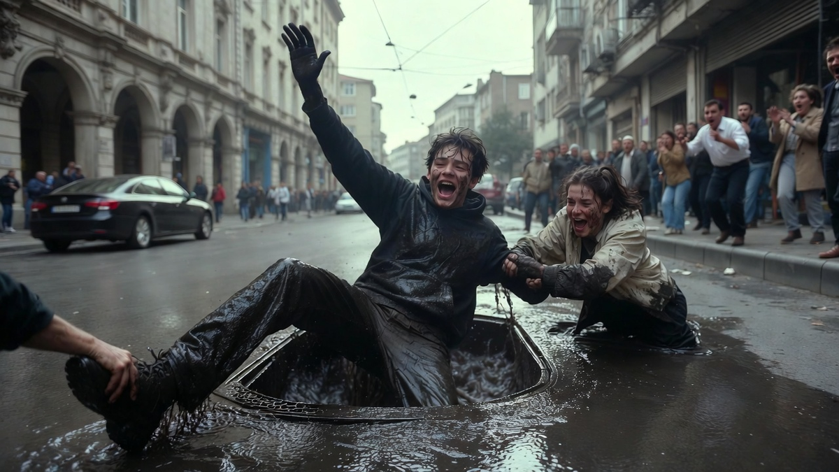 Решётка с громким, ржавым скрежетом поддалась и отвалилась, упав в воду с тяжёлым всплеском. Открывшийся проход был низким, арка едва возвышалась над поверхностью чёрной воды. Они поняли, что им придётся идти по пояс, а то и по грудь в этой ледяной, отвратительной жиже. Но выбора не было. Сверху уже спускались по скобам, свет фонарей мелькал на стенах галереи. Артём первым шагнул в проём. Холодная вода, пахнущая гнилью и металлом, обожгла кожу. Он протянул руку Софье, и они, держась за стены, двинулись вперёд, поднимая перед собой телефоны, как свечи в склепе. Тоннель был сложен из крупного кирпича, местами обвалившегося. Они шли, спотыкаясь о невидимый под водой мусор, стараясь дышать ртом, чтобы не чувствовать запах. Вода постепенно прибывала, достигая груди. Паника, холодная и липкая, начала сжимать горло. Что, если это тупик? Что, если тоннель уходит полностью под воду? Через несколько десятков метров тоннель сделал поворот, и они увидели вдалеке слабый, рассеянный свет. Не электри
