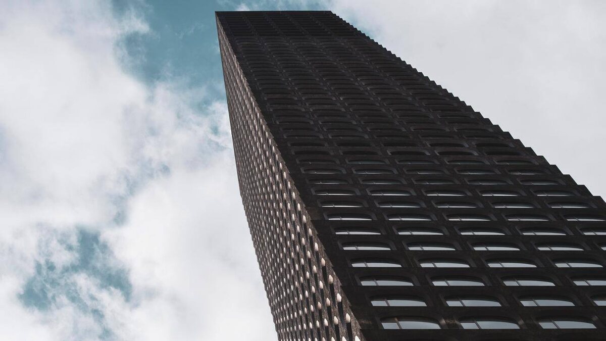 Фасад небоскрёба отделан бетонными панелями — их цвет и фактура