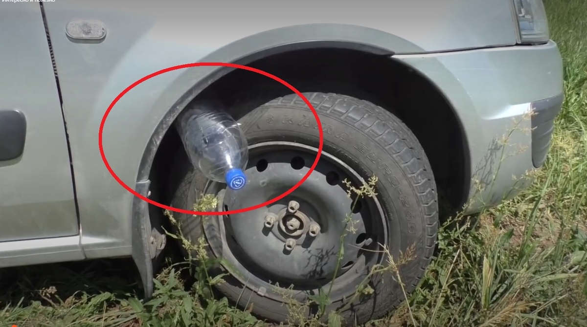 Этот способ широко применяется на крупных парковках, где пространство ограничено, а транспортные средства расположены вплотную друг к другу. Преступники заранее размещают пустую пластиковую бутылку таким образом, чтобы она оказалась зажата между колесом вашей машины и аркой крыла. Далее они ждут, пока владелец машины сядет за руль и начнёт движение.