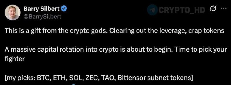 ΡΠΎΠΊΠ΅Π½ΠΎΠ². Π‘ΠΎΠ²ΡΠ΅ΠΌ ΡΠΊΠΎΡΠΎ Π½Π°ΡΠ½Π΅ΡΡΡ ΠΌΠ°ΡΡΡΠ°Π±Π½ΡΠΉ ΠΏΠ΅ΡΠ΅ΡΠΎΠΊ ΠΊΠ°ΠΏΠΈΡΠ°Π»Π° Π² ΠΊΡΠΈΠΏΡΠΎΠ²Π°Π»ΡΡΡ. ΠΡΠ΅ΠΌΡ Π²ΡΠ±ΡΠ°ΡΡ ΡΠ²ΠΎΠ΅Π³ΠΎ Π±ΠΎΠΉΡΠ°. ΠΠΎΠΉ Π²ΡΠ±ΠΎΡ: #BTC, #ETH, #SOL, #ZEC, #TAO, ΡΠΎΠΊΠ΅Π½Ρ ΠΏΠΎΠ΄ΡΠ΅ΡΠ΅ΠΉ Bittensor. ΠΠ°ΡΡΠΈ Π‘ΠΈΠ»Π±Π΅ΡΡ β ΠΎΡΠ½ΠΎΠ²Π°ΡΠ΅Π»Ρ Digital Currency Group ΠΈ Grayscale, ΠΎΠ΄ΠΈΠ½ ΠΈΠ· ΡΠ°ΠΌΡΡ