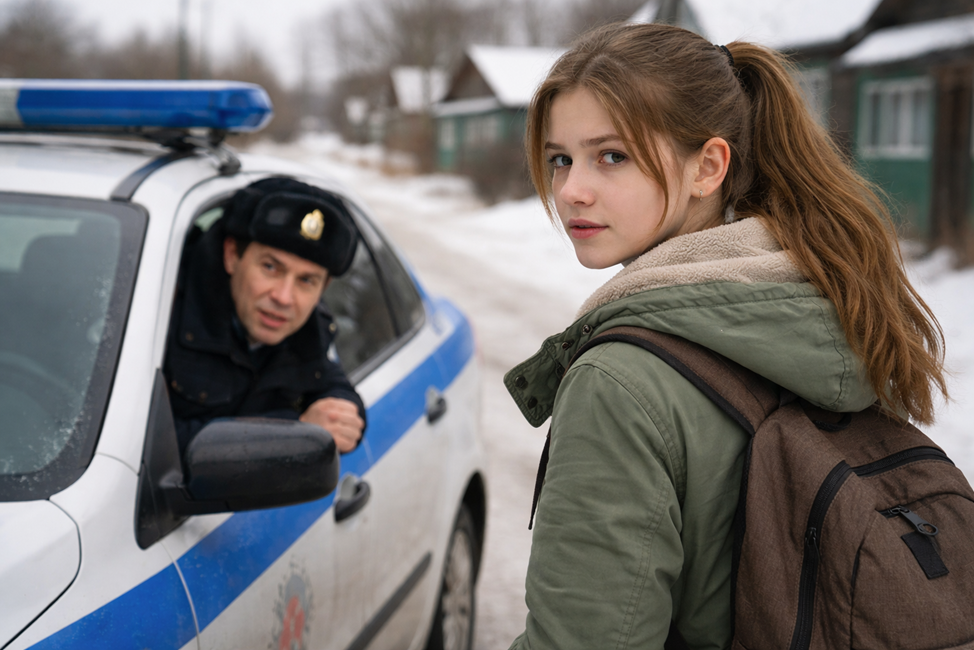 Лариса шла в школу, когда ее остановили. Участковый с напарником вышли из машины.