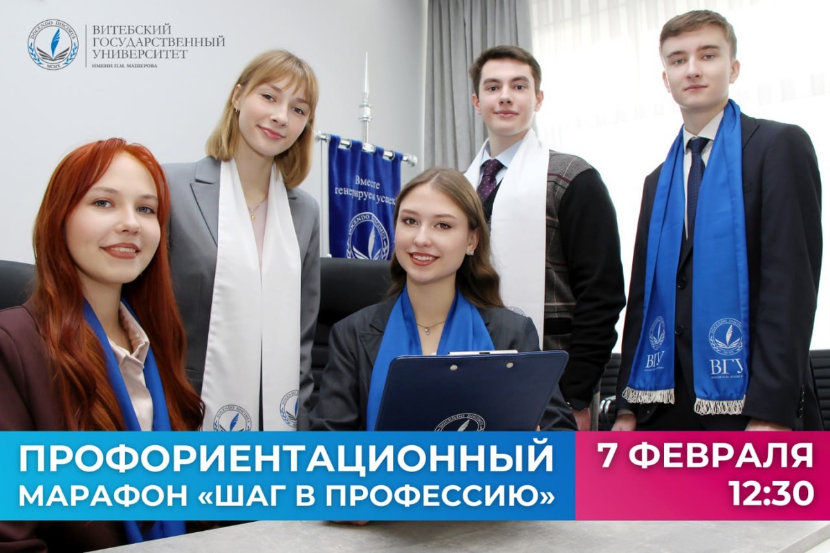 М. Машерова приглашает учащихся профильных классов педагогической, инженерной и спортивно-педагогической направленности на профориентационный марафон «Шаг в профессию». ❗️Регистрация участников с 11:30. 🔴В программе мероприятия: 🟢яркая концертная программа; 🟢работа интерактивных образовательных площадок; 🟢участие в мастер-классах и викторинах, встреча с успешными выпускниками и студентами, посещение значимых локаций университета в рамках работы профильных секций. ☝️Участники мероприятия узнают подробности о приёмной кампании 2026 года, получат ответы на интересующие вопросы, встретятся с представителями руководства университета и факультетов. 🗺Приглашаем в наш университет по адресу: г. Витебск, Московский пр-т, 33 (актовый зал). 📞Контактные телефоны: 8 0212 37 03 96; 8 033 317 95 09. #анонсы #абитуриенту