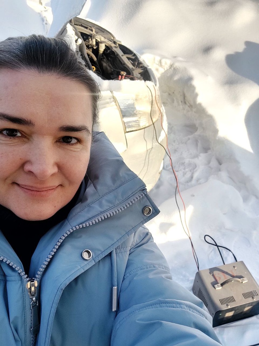 План: Отвезти детей в спортшколу к 16. По пути заехать в больницу. Значит - выезжать на час раньше. Выхожу. Машина не заводится, она видите ли замерзла. Далее лайфхак для автоледечек❤️, мало ли... Добываем эту квадратную штуку и присоединяем клемы к болтикам, как на фото😁 важно + к +, а - к -. Включаем всё тоже как на фото. Помним про розетку. Даём постоять так 5 минут. Пробуем завести. Нет? Ждем еще. Пробуем завести. Да?! Ура. Теперь прогреваем хотя бы еще 10 минут, лучше больше. У меня вот пока есть время на пост и на одеться. И всё. Скатертью дорожка (т.е.ровной и безопасной нам всем дороги!) ❤️👌