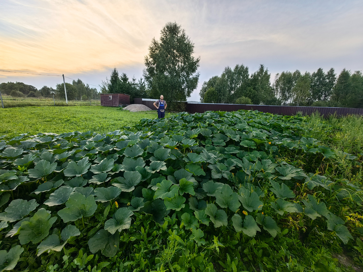 В этом году у меня в планах непременные тыквы. Паша протравил от борщевика и перепахал большой кусок еще неиспользуемой земли на нашем участке. Участок у нас большой, 47 соток. И еще многое не освоено. Пустые пространства мы перепахивали ежегодно и окашивали. Но как только выяснилось, что тыквы отлично затаптывают любые сорняки, мы их стали высаживать на пустующие площади. Мужу меньше косить. Кстати борщевик тыквы отлично топчут. И даже при том, что тыквы мы практически не едим я их посажу много. Помимо цветных пакетиков у меня еще всякие самосборные семена из разных тыкв в большом количестве, так что можно гектары засевать. Вот на пустыри пойдут густенько все самосборные семена. А плоды будут лопать куры)) Сортовые я посею повнимательнее. Скорее всего снова на черную нетканку. Она пока еще живая после нескольких лет использования под тыквами)) Вот, кстати, на верхнем фото эти же самые тыквы так разрослись. Там было всего 10 лунок, но в каждой по 2-3 растения. В итоге тыквы заняли большую площадь, гораздо больше, чем их кусок нетканки. И шикарно вытоптали все сорняки. После тыкв мы сюда перенесли кусты смородины.