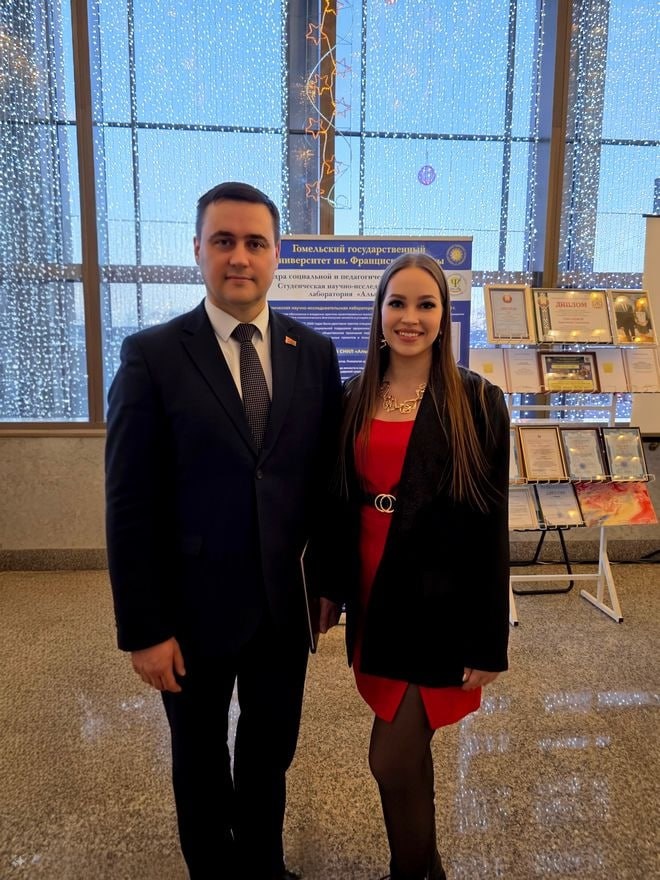С. Слесарева поделилась впечатлениями от общения с министром образования, который посетил экспозицию СНИЛ «АЛЬЯНС», посвященную 30-летию специального фонда Президента Республики Беларусь по социальной поддержке одаренных учащихся и студентов: 🗣«Это уже вторая встреча с Министром образования Республики Беларусь. Андрей Иванович был приятно удивлён большим количеством наград и побед в самых разных номинациях, а также отметил победу в Республиканском конкурсе научных работ студентов, подчеркнув высокий уровень представленного исследования. Министр пожелал дальнейших успехов, новых достижений и выразил надежду на новые встречи. Каждый такой момент — напоминание о том, как важно слышать напутственные слова и слова поддержки от главы системы образования. Это придает сил, уверенности и показывает, что твой труд замечают даже на таком высоком уровне. Такие встречи вдохновляют двигаться дальше, расти, развиваться и подниматься только выше».