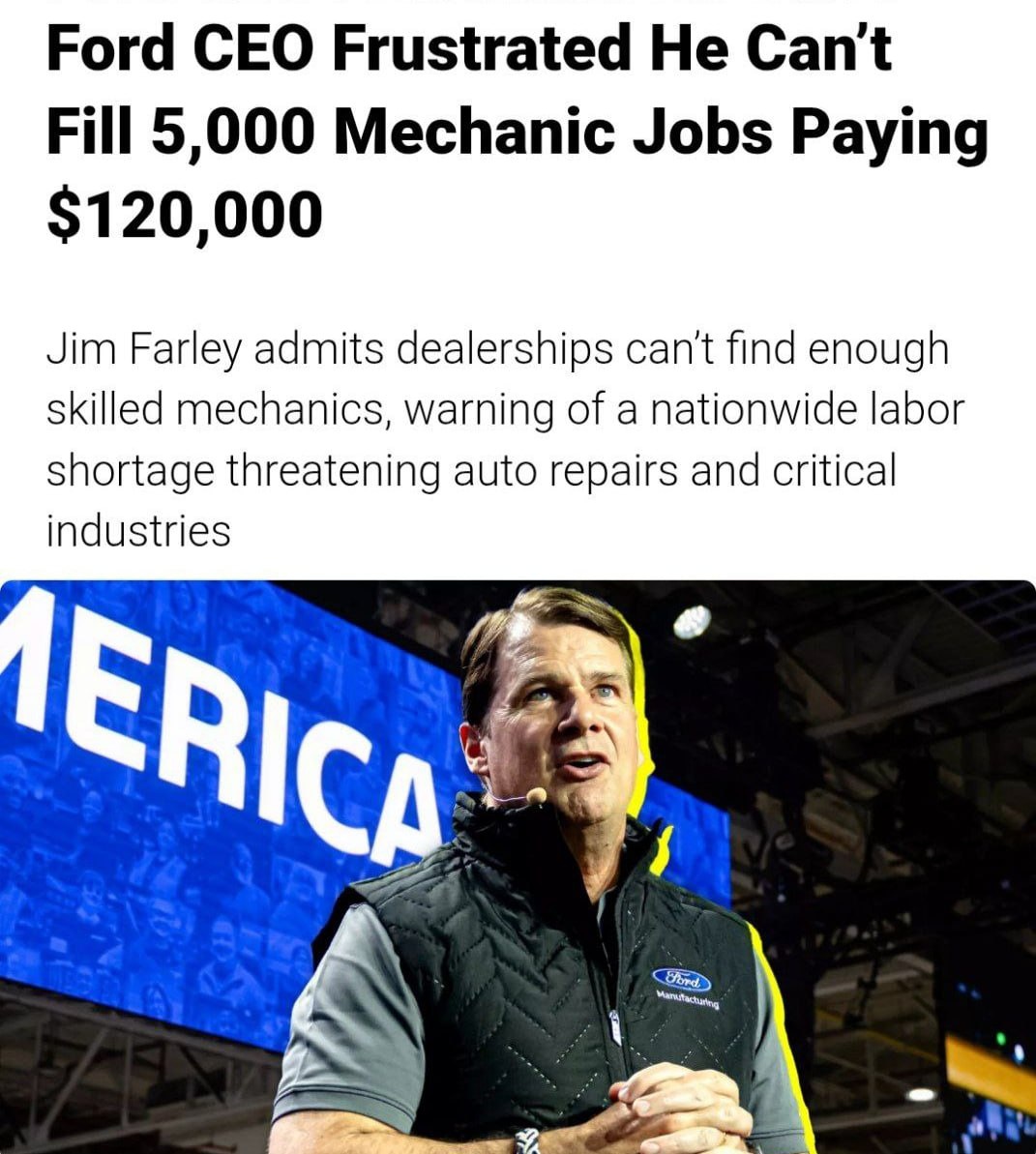 На это жалуется генеральный директор компании Джим Фарли — у них открыто 5 тысяч вакансий, сотрудников остро не хватает из-за недостатка образования и профподготовки. Колледжи делают ставку на гуманитариев и ИИ-направления. Звучит как шанс 😉