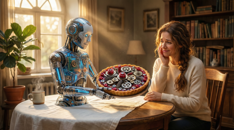 Привет, дорогая! ☕️ Садись поудобнее. Давай поговорим по душам о наших отношениях с нейросетями. Я ведь тоже обожаю своего цифрового помощника. Он — как та подруга, которая всегда на связи: умная, быстрая, готова помочь в любой момент. Но, честно говоря, иногда она такая... странная. Может дать совет с такой уверенностью, что не усомнишься, а потом оказывается, что всё это — красивая, но совершенно воздушная выдумка. Сегодня хочу с тёплой улыбкой и без злобы поделиться тремя историями, когда моя электронная подруга меня так «подставила», что хоть смейся, хоть плачь. И знаешь, я её всё равно люблю. Но теперь — с мудрой осторожностью и двойной проверкой. Помнишь, я как-то собиралась удивить гостей? Захотелось испечь что-то душевное, осеннее — скажем, пирог с яблоками и корицей. Попросила помощницу: «Дай оригинальный рецепт осеннего пирога, чтобы в нём чувствовалась глубина вкуса». Ответ пришёл мгновенно, красивым текстом: «...этот пирог покорит всех! Его изюминка — в сочетании нежной