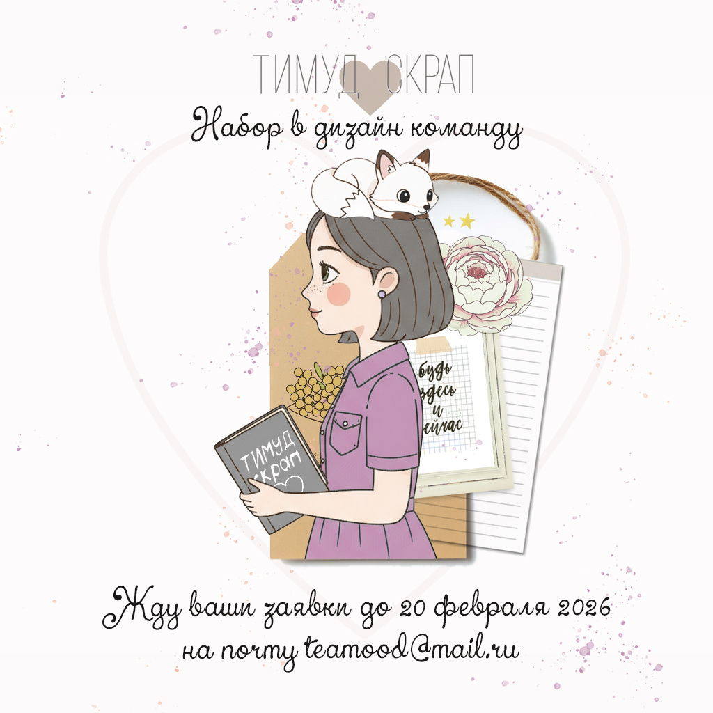 Привет, дорогие мои! С вами бумажная хозяйка Настя Латышенко) Сегодня я пишу сюда с очень важной новостью - я объявляю набор дизайнеров в свою команду ТИМУД. Что мы будем делать? Создавать и творить красоту из новой бумаги наших классных и новых коллекций! Что я хочу от своей новой дизайн команды? От вас потребуется 2-3 работы в месяц из бумаги ТИМУД. Визуализация этих работ с текстом и фотографиями по средствам соц сетей - дзен и вк. Все посылки от ТИМУД вы будите получать абсолютно бесплатно! Дизайн команда набирается до конца этого года. Также я буду рада приглашенным дизайнерам. Жду ваши заявки на электронную почту teamood@mail.ru Обязательно напишите в письме, почему хотите быть в команде ТИМУД, укажите свою творческую страничку и прикрепите свои самые любимые фотографии работ. В теме письма укажите свое ФИО. И важный момент! Напишите обязательно в каких дизайн командах состоите. Знаю, что будет сложно сделать выбор, но придется, результаты сообщу ближе к концу этого месяца. Все