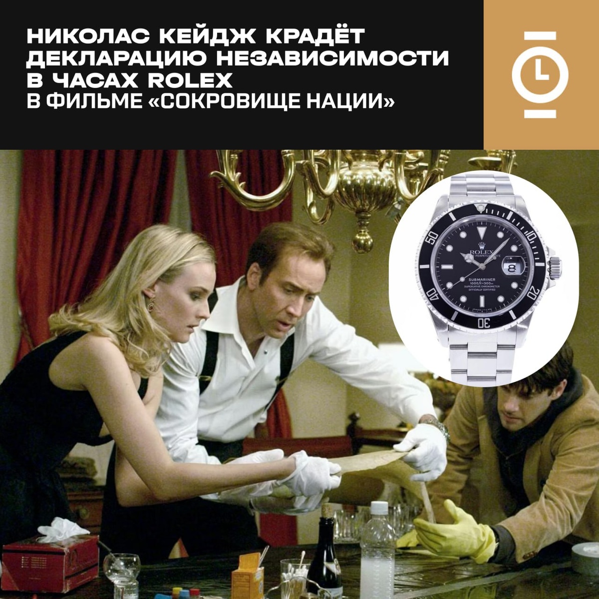 НИКОЛАС КЕЙДЖ КРАДЁТ ДЕКЛАРАЦИЮ НЕЗАВИСИМОСТИ В ЧАСАХ ROLEX В ФИЛЬМЕ «СОКРОВИЩЕ НАЦИИ