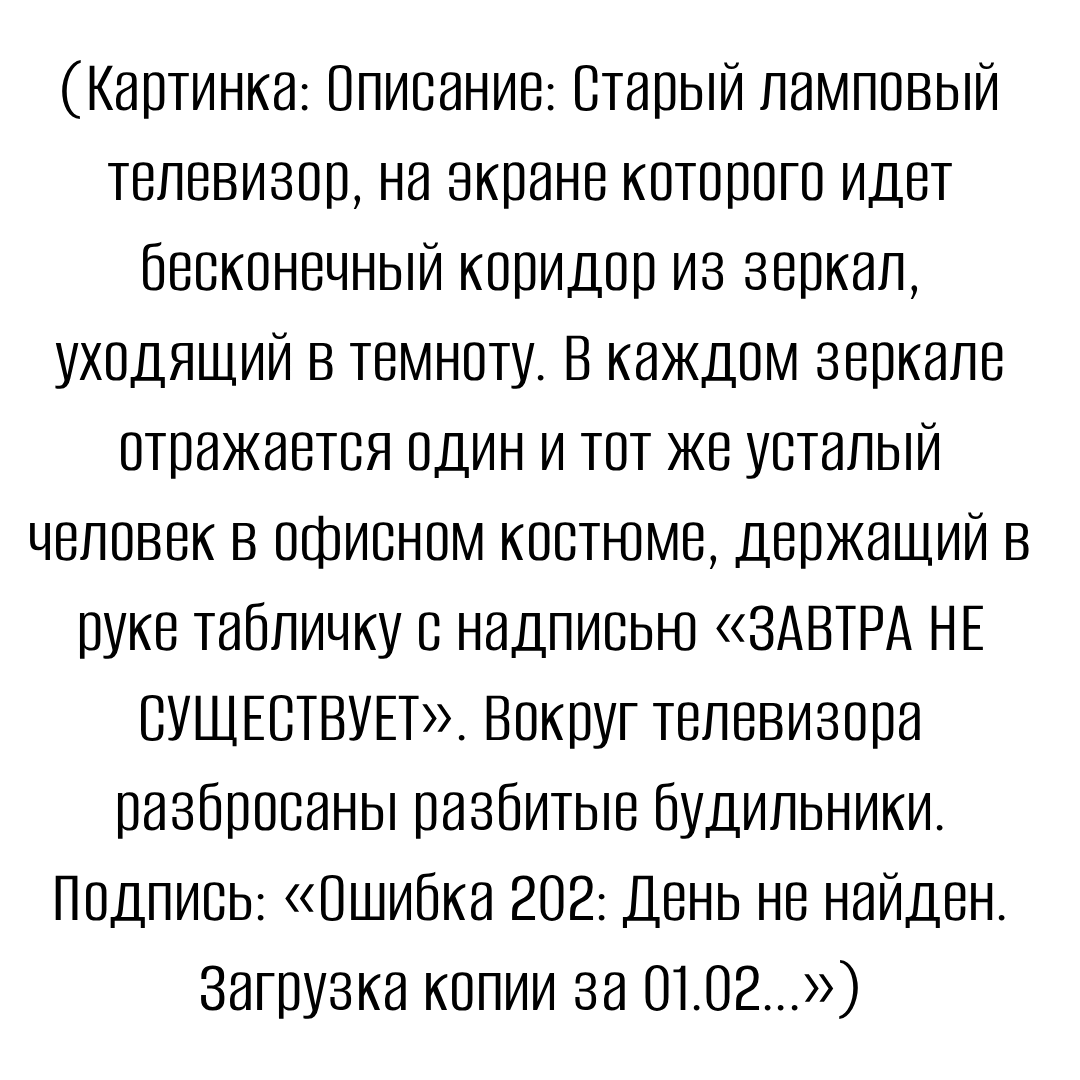 «Вставайте, граф, вас ждут великие дела!» Или, как говорят у нас в цифровом концлагере: «Проснись, Нео, ты опять проспал будильник на десять минут, и матрица тебя за это оштрафует». Второе февраля. Да-да, тот самый день. Глобальный праздник всех офисных самураев и кассиров «Пятерочки». День Сурка. Вы думаете, это просто голливудская комедия с Биллом Мюрреем? Ха! Это документальный фильм о нашей с вами жизни, просто жанр перепутали. В оригинале это должен быть экзистенциальный хоррор. Посмотрите на свой день. Звонок будильника (мелодия «Пение птиц», которая вызывает нервный тик). Ванная. Зеркало (оттуда смотрит помятая текстура персонажа). Кофе (черная жижа для разгона процессора). Транспорт (время загрузки локации «Офис»). Работа (гринд ресурсов). Транспорт. Магазин. Дом. Сериал. Сон (перезагрузка сервера). И завтра — Ctrl+C, Ctrl+V. Мы все живем в Панксатони, штат Пенсильвания. Только у нас вместо сурка — лысеющий начальник отдела продаж, а вместо веселой музыки по радио — новости, от