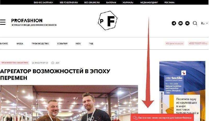 В условиях геополитического напряжения, перестройки рынка, роста налоговой нагрузки и комиссий маркетплейсов, снижения покупательской способности компаниям всё чаще нужна не теория, а быстрая и точная экспертная помощь. Поэтому мы запускаем горячую линию для fashion-предпринимателей — с бесплатными консультациями профильных специалистов. На сайтах PROfashion и BEE-TOGETHER.ru уже работает специальный виджет. Через него можно оставить запрос и получить помощь по самым актуальным вопросам: 🟤кассовые разрывы; 🟤изменения в налоговом законодательстве; 🟤 проблемы на производстве и срыв сроков; 🟤логистика и маркировка; 🟤работа с маркетплейсами; 🟤и другие операционные вызовы бизнеса. Как это работает: 1️⃣ Вы формулируете запрос и оставляете контакты 2️⃣ Команда PROfashion подбирает профильного эксперта 3️⃣ Специалист связывается с вами в течение 1–2 дней ✔️ PROfashion Channel