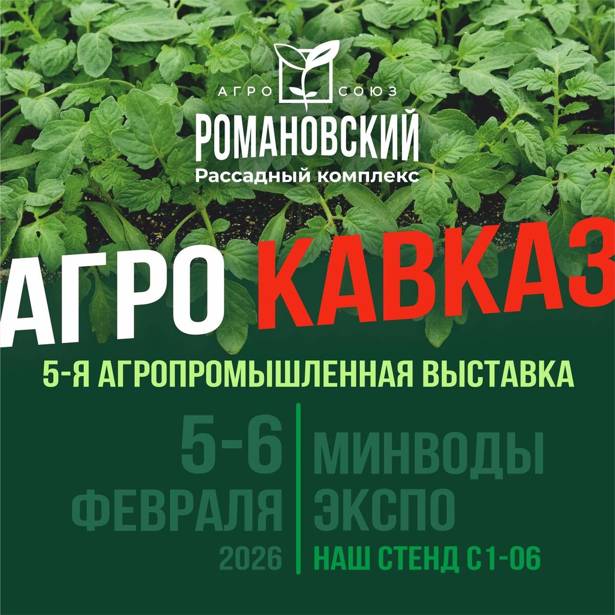 »! 🗓 5–6 февраля состоится 5-я, юбилейная выставка «АгроКАВКАЗ» в МВЦ «МинводыЭКСПО», посвящённая передовым технологиям, оборудованию и материалам для современного сельского хозяйства. И мы будем там с тем, чем по-настоящему гордимся – нашей рассадой. 💚 ✅ На выставке представим результаты работы нашего рассадного комплекса «Агросоюз Романовский». Вас ждёт рассада различных культур, выращенная с соблюдением всех современных агростандартов. 📍 Ждём вас на стенде № С1-06. Запланируйте визит и приходите узнать, какие решения и технологии могут быть полезны именно вашему хозяйству. До встречи на выставке!
