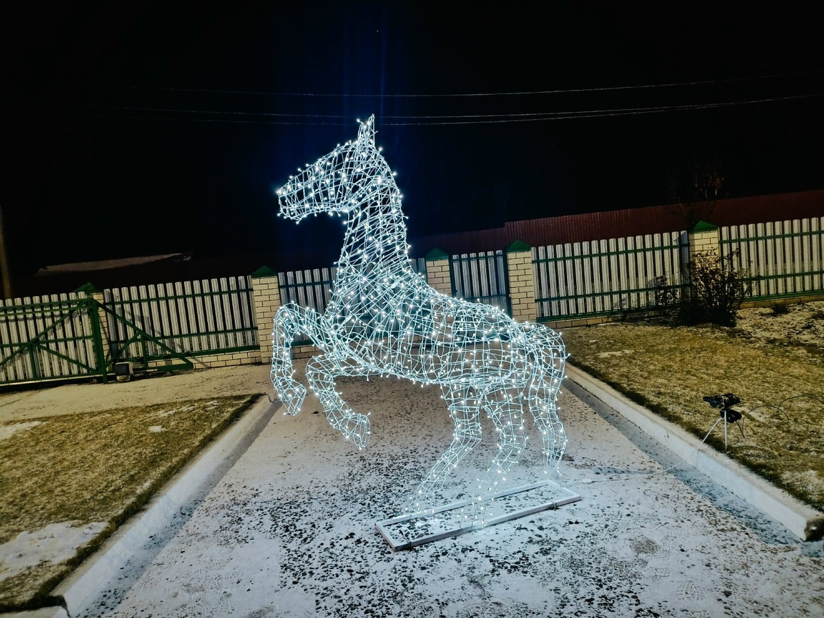 Накануне праздника сказочный ящер расправил свои крылья прямо перед домом Ворониных. Красивый, эффектный — весь в гирляндах, всё, как и полагается представителю волшебного праздника. К слову, мифическое существо и сегодня стоит на своём законном месте, наблюдает за хозяевами и украшает двор. Ведь именно это творение позволило мастеру прочувствовать всю прелесть работы с проволокой.