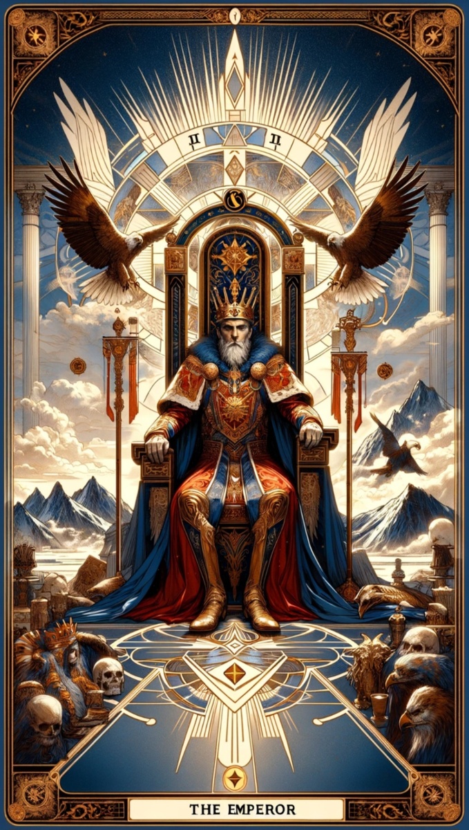 Четверка связана с арканом "Император" в Таро (мудрый правитель, устанавливающий порядок) и астрологическими знаками Телец (материальная стабильность) и Козерог (структура, долгосрочные цели).