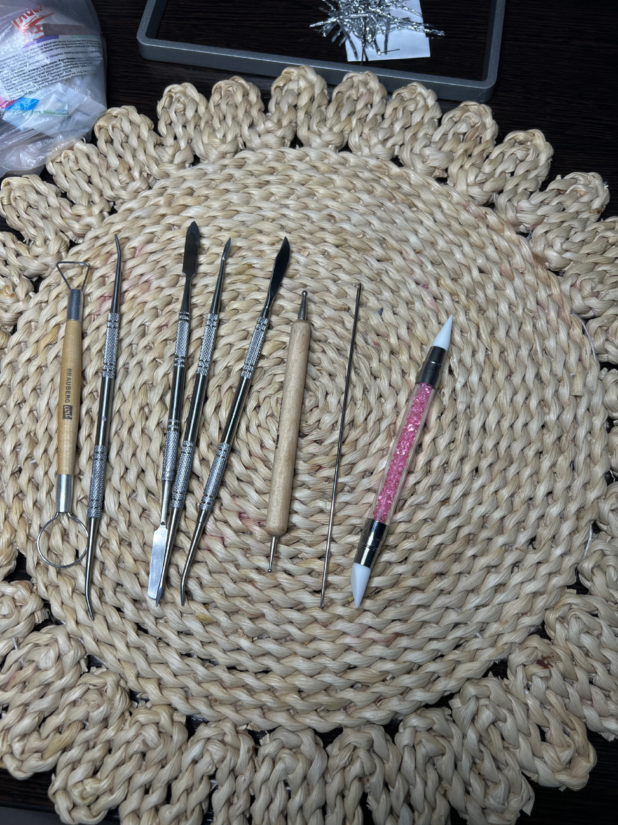 Стеки, ножи, наждачка, пинцеты, кисти, лаки, краски...Голова пошла кругом. Я открыла Aliexpress. Заказала всё, что показалось нужным. И ещё купила набор Jovi — такой детский набор для лепки с пластмассовыми стеками. Думаю: "Начну с него, а там посмотрю."Спойлер: Jovi не подошёл. AliExpress — подошёл. И сейчас я расскажу, что реально нужно, а что можно не покупать.