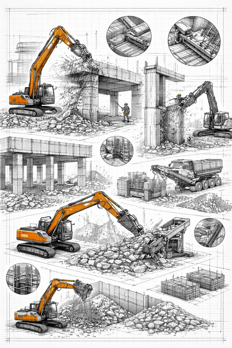 ГК АНТ ТЕХНИК выполняет профессиональный демонтаж бетонных и железобетонных конструкций различного назначения и степени сложности. Мы специализируемся на разборке несущих и ограждающих элементов зданий и сооружений, включая плиты перекрытий, балки, колонны, ригели, стены, фундаменты, а также массивные монолитные конструкции. Работы проводятся как в рамках полного сноса объектов, так и при частичном демонтаже в процессе реконструкции, технического перевооружения и редевелопмента промышленных и гражданских зданий. Особое внимание уделяется сохранности смежных конструкций, инженерных сетей и прилегающих объектов, что особенно важно при работе в действующих или стеснённых условиях. В зависимости от конструктивных особенностей объекта и требований проекта ГК АНТ ТЕХНИК применяет ударные и безударные технологии демонтажа. В работе используется современное специализированное оборудование: гидромолоты, гидроножницы, навесное демонтажное оборудование, а также технологии алмазной резки и бурен