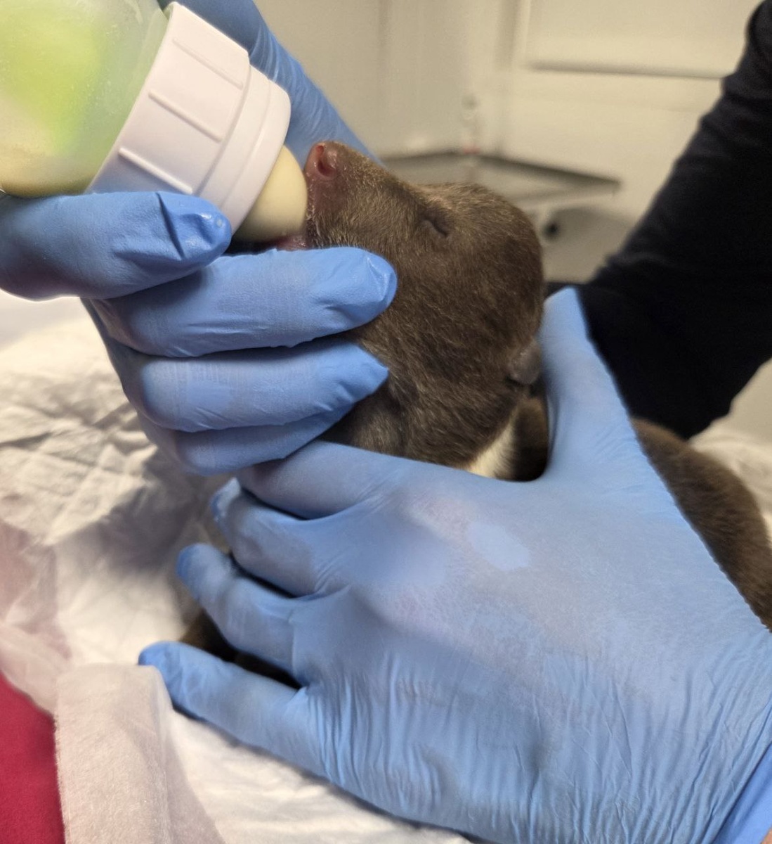 Медвежонок в таком возрасте считается неонатальным пациентом. А это значит, что многие системы органов еще не зрелые, поэтому терапию необходимо подбирать, учитывая эти особенности организма. Маленький организм очень чувствителен к смене температуры окружающей среды и переходу на искусственное кормление. Находясь какое то время без медведицы, медвежата могут переохлаждаться, что чревато развитием пневмонии. А переход на непривычную еду может спровоцировать проблемы с желудочно-кишечным трактом. Диагностика состояния складывается из осмотра, рентгена и ультразвукового обследования. По рентгену мы исключили наличие пневмонии. По УЗИ мы оценили состояние желудочно- кишечного тракта. Для чего это нужно? Для принятия решения о выборе терапии / коррекции терапии Для оценки перистальтики ЖКТ и наполненности желудка пищей перед кормлением, чтобы принять решение о начале кормления, коррекции объема пищи и интервалов между кормлениями. Какие еще возможности УЗИ у неонатов? Оценивать грудную пол