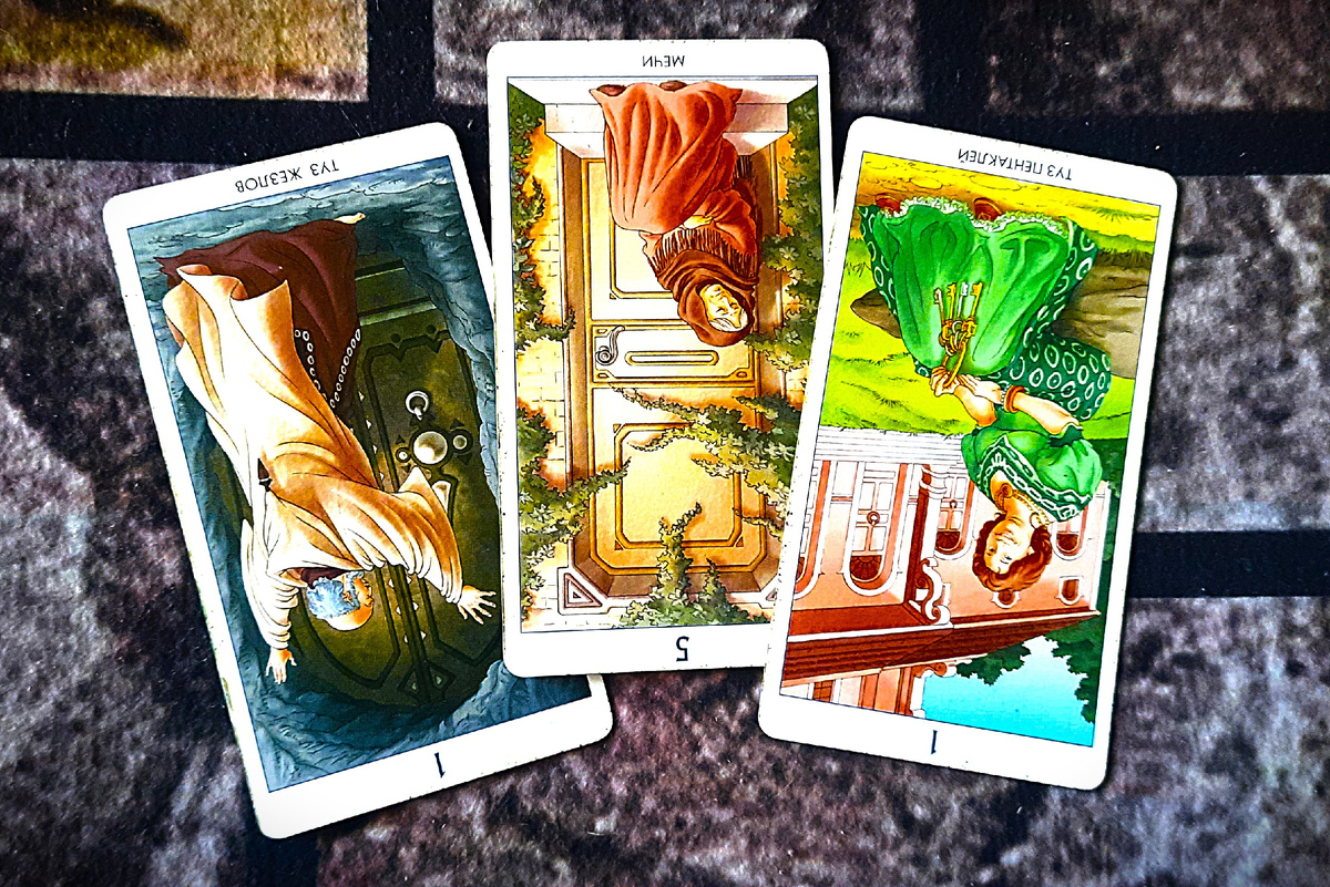 Перевернутая Пятерка Мечей добавляет к этому образу важный оттенок: он ощущает, что вы стараетесь избежать конфликтов и болезненных столкновений. В его восприятии вы сейчас не склонны идти на обострение, даже если это необходимо, и предпочитаете отступить, чтобы не усугублять ситуацию. Он видит в этом не слабость, а скорее осознанный выбор - вы сознательно отказываетесь от борьбы, которая может принести новые раны.