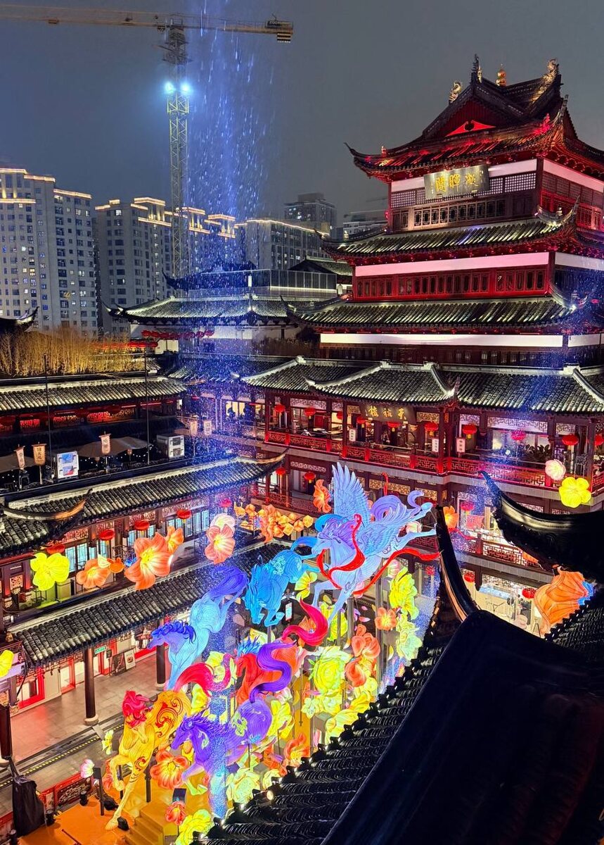 Юйюань, знаменитый «Сад Радости» с его древними павильонами и извилистыми мостиками,-это идеальная сцена для самого масштабного светового шоу. Но в 2026 году здесь не просто зажгли фонарики. Здесь ожили легенды.