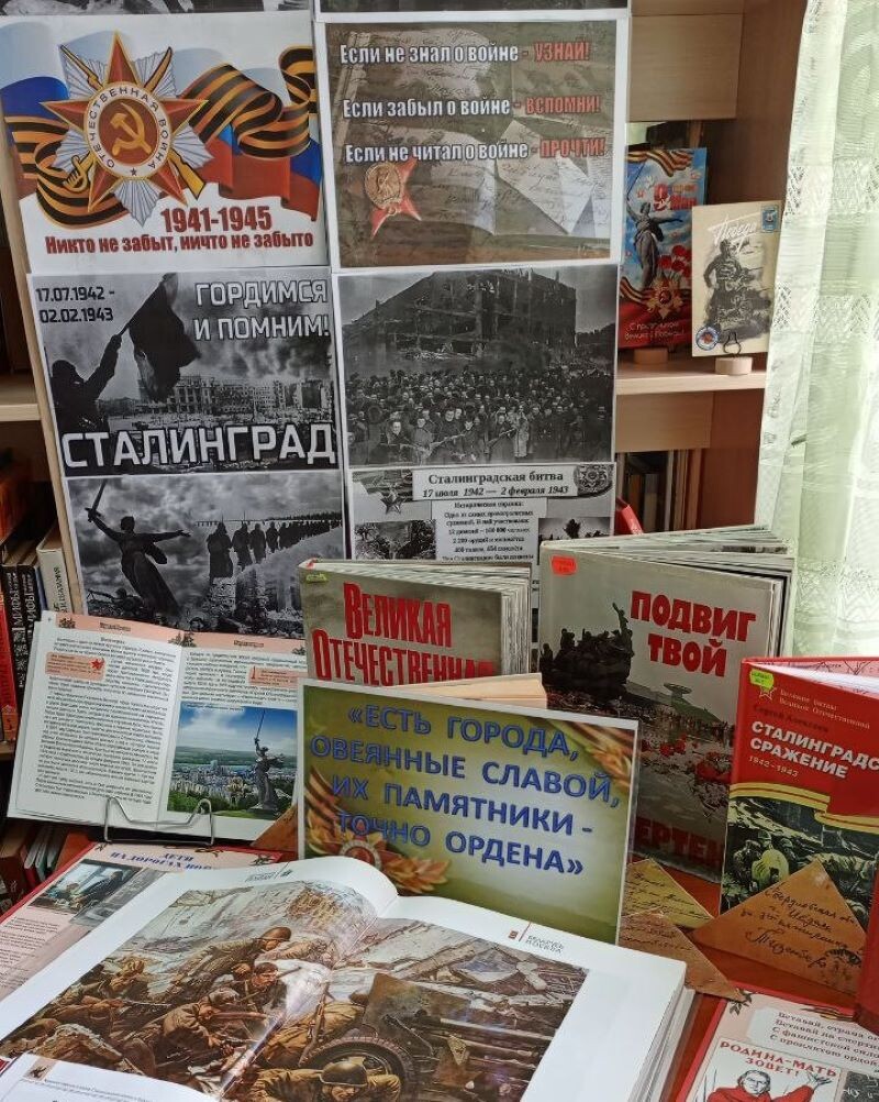 В отделе обслуживания учащихся среднего и старшего школьного возраста открылась книжно-иллюстративная выставка «Вечный огонь Сталинграда!», посвященная Дню разгрома советскими войсками немецко – фашистских войск в Сталинградской битве. Сталинградская битва — одно из ключевых сражений Великой Отечественной и Второй мировой войн, которое стало переломным моментом в ходе конфликта. Она длилась 200 дней и ночей — с 17 июля 1942 года по 2 февраля 1943 года. Победа советских войск в этой битве ознаменовала переход стратегической инициативы к Красной Армии и положила начало коренному перелому в войне. На выставке представлена литература, которая познакомит юных читателей с важными периодами Сталинградской битвы, с её историческим значением, и с великим подвигом защитников Сталинграда. Выставка призвана напомнить молодому поколению о героизме солдат и мирных жителей, проявленном в суровых условиях осады города, а также подчеркнуть важность сохранения исторической памяти и уважения к подвига