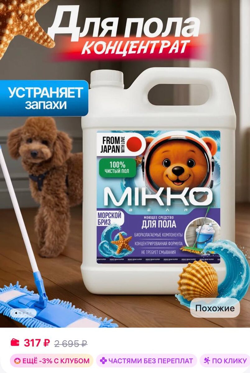 😀😀😀MIKKOBEAR Средство для мытья полов 5 литров парфюмированное